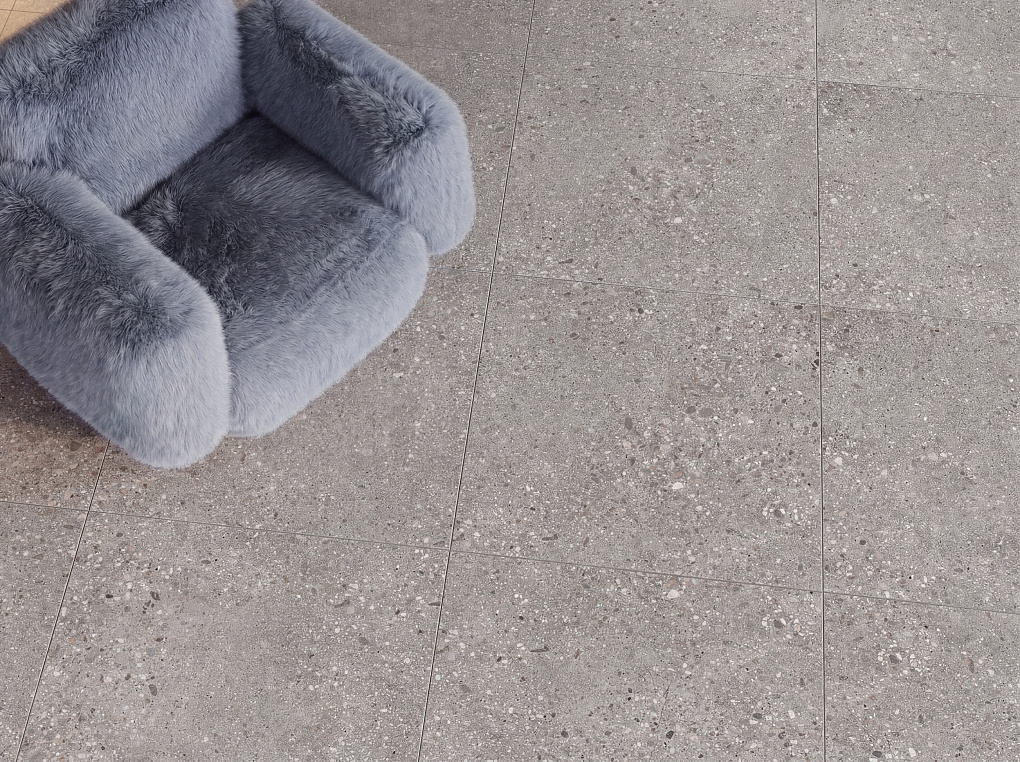 Сочетание матовой поверхности с деликатными глянцевыми элементами позволяет воссоздать сложную фактуру натурального камня, делая поверхность визуально и тактильно практически неотличимой от природного материала.