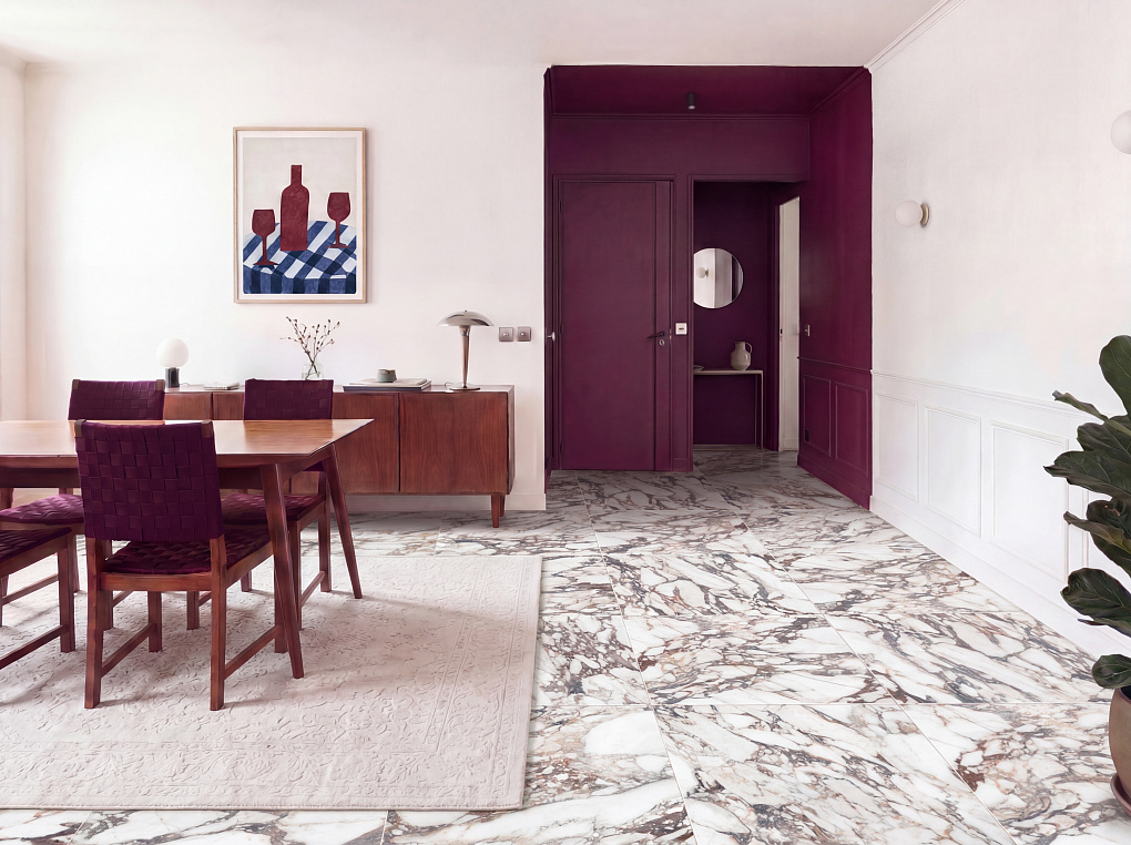 Керамогранит «Марбл виола» — ваш билет в мир естественного совершенства, готовый преобразить любое помещение в комфортное и приятное пространство.