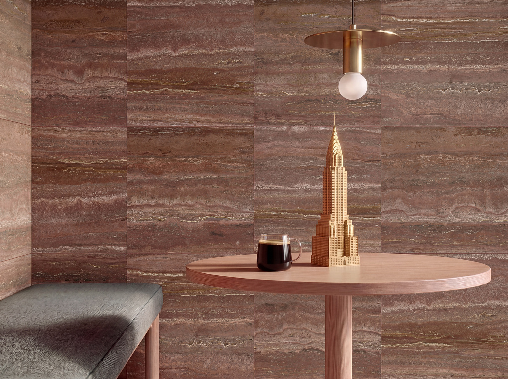 Входная зона небоскрёба Chrysler Building, облицованная богатым насыщенно-терракотового травертином, вдохновила на создание коллекции керамогранита «Скайлайн».