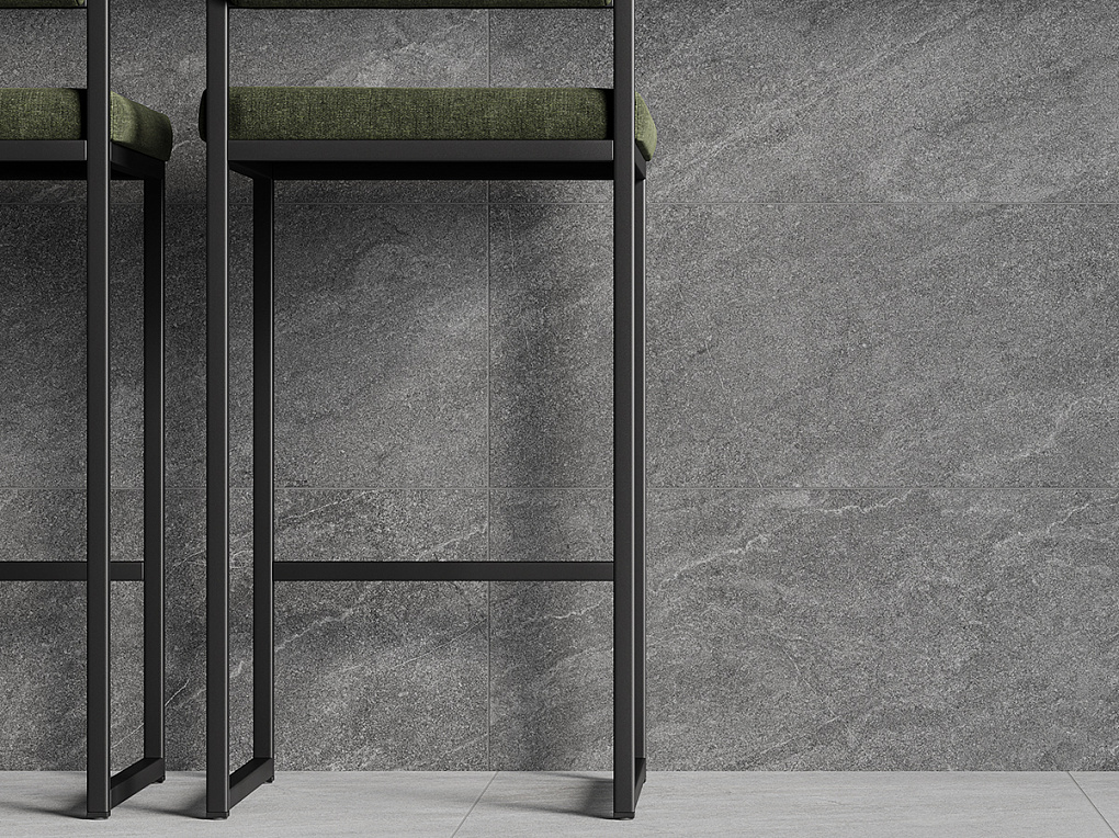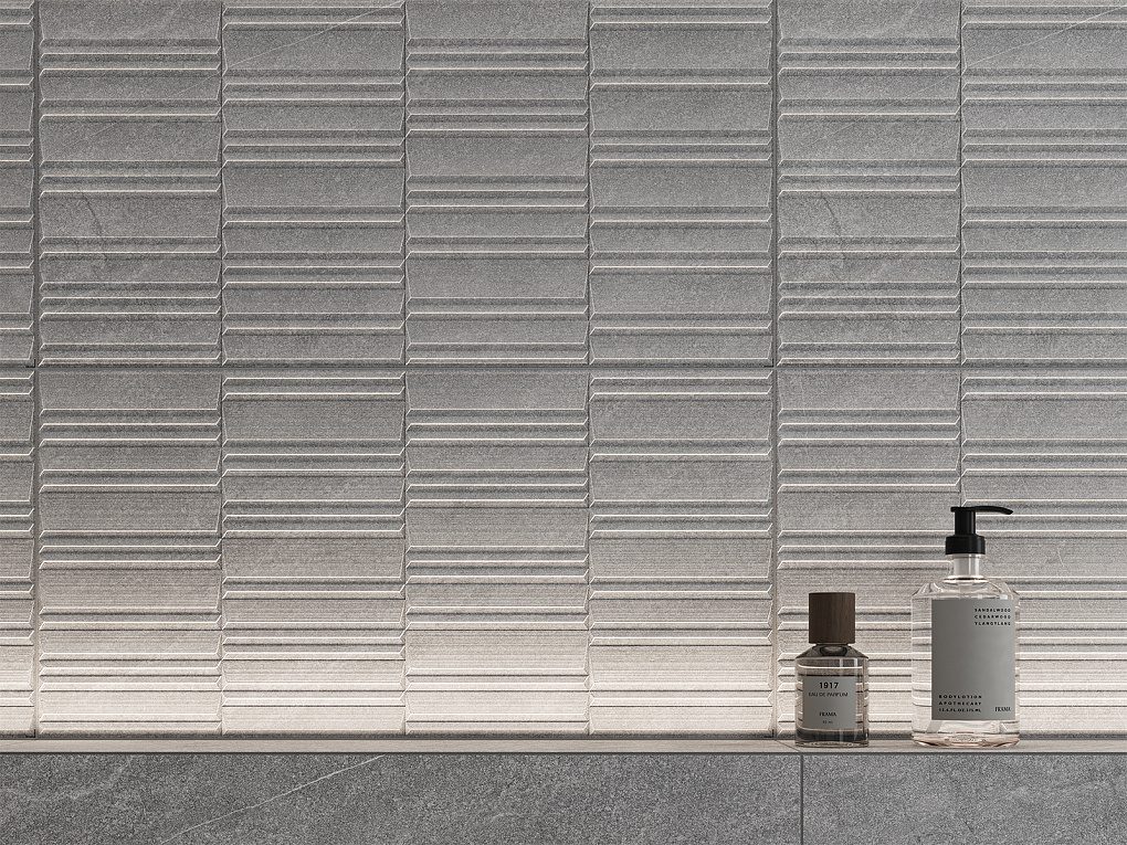 Серый и тёмно-серый базальтовый камень в коллекции Татлин напоминает материал, очищенный от декора, а строгий геометричный рельеф отсылает к динамике и сбивчивой пластике знаменитой спирали. Это архитектурный подход к плитке — функциональный, смелый, и в то же время — вне времени, как сама идея Татлина.